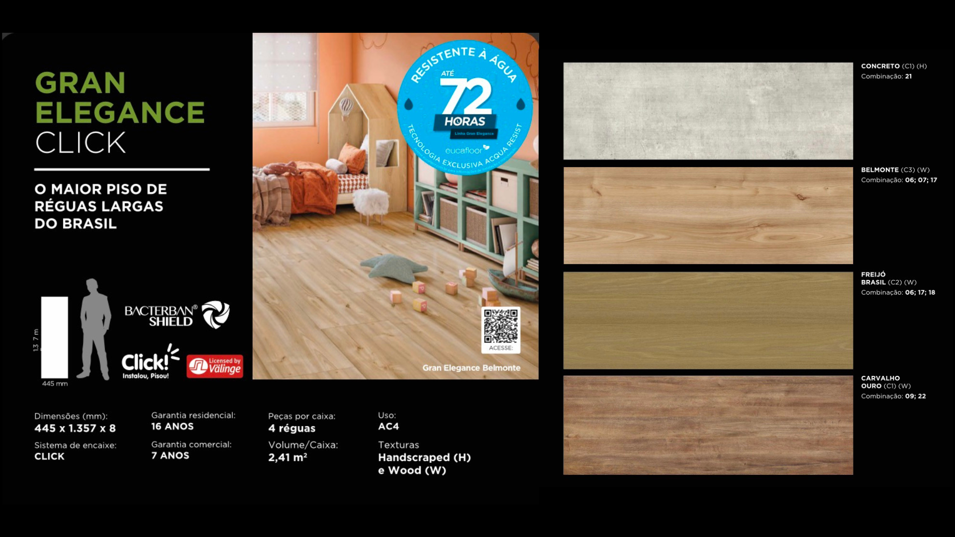 Piso Laminado Resistente à Água, Piso Eucafloor Fácil Instalação, Piso Gran Elegance Acqua Resist, Piso Concreto, Piso 72h Resistência Água, Piso Laminado Durável, Piso Design Sofisticado, Piso Certificação NALFA, Piso 7951267.