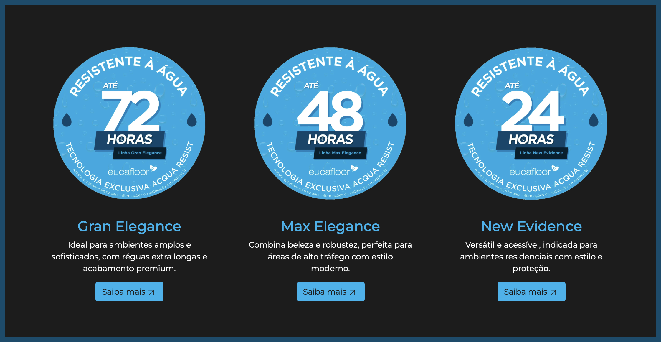 A Eucafloor apresenta uma revolução no mundo dos pisos laminados: a tecnologia Acqua Resist — desenvolvida para unir design sofisticado, alta durabilidade e resistência à água, garantindo mais tranquilidade e beleza para o seu ambiente.