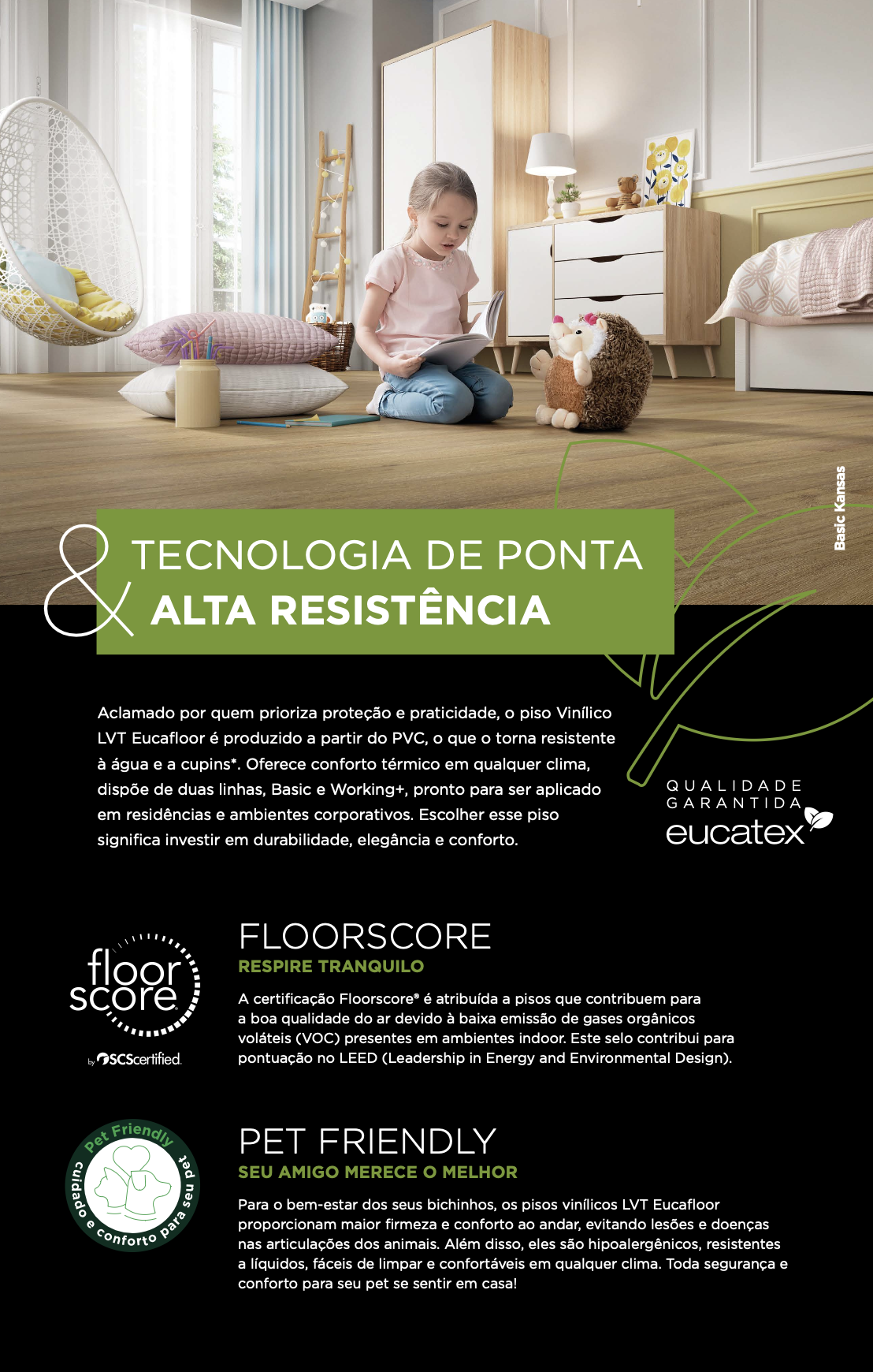 Produzidos em PVC de alta qualidade, são resistentes à água e aos cupins, além de possuírem conforto térmico em qualquer clima, tornando os ambientes mais aconchegantes e seguros. Contam também com o selo FloorScore, que atesta baixa emissão de VOCs, garantindo ambientes mais saudáveis e melhor qualidade do ar interno. Com camada de PU de 0,15 mm, os pisos da Linha Big Basic são fáceis de limpar, resistentes a riscos e manchas, e perfeitos para quem deseja um produto durável e de instalação prática.