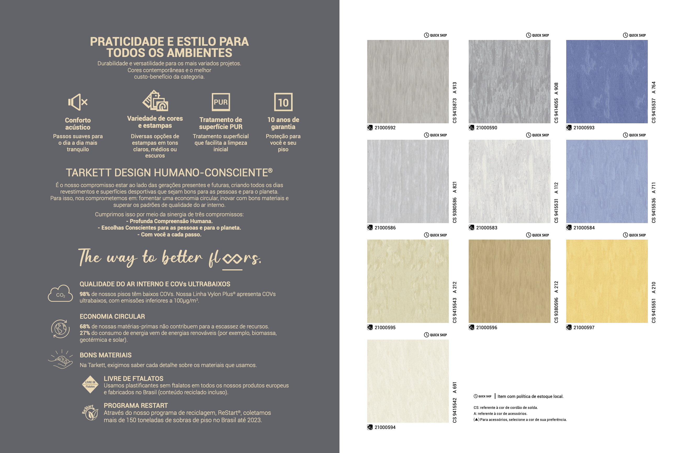 O modelo Champagne 21000595 da linha Vylon Plus é a escolha ideal para quem busca sofisticação com neutralidade. Seu tom bege claro remete à elegância discreta, sendo perfeito para ambientes que exigem um visual clean, moderno e acolhedor. É amplamente utilizado em clínicas, hospitais, laboratórios, escritórios e instituições de ensino, combinando beleza e praticidade. Com excelente desempenho técnico e facilidade de limpeza, o Champagne proporciona um acabamento uniforme e agradável, com alta durabilidade mesmo em locais de grande circulação.